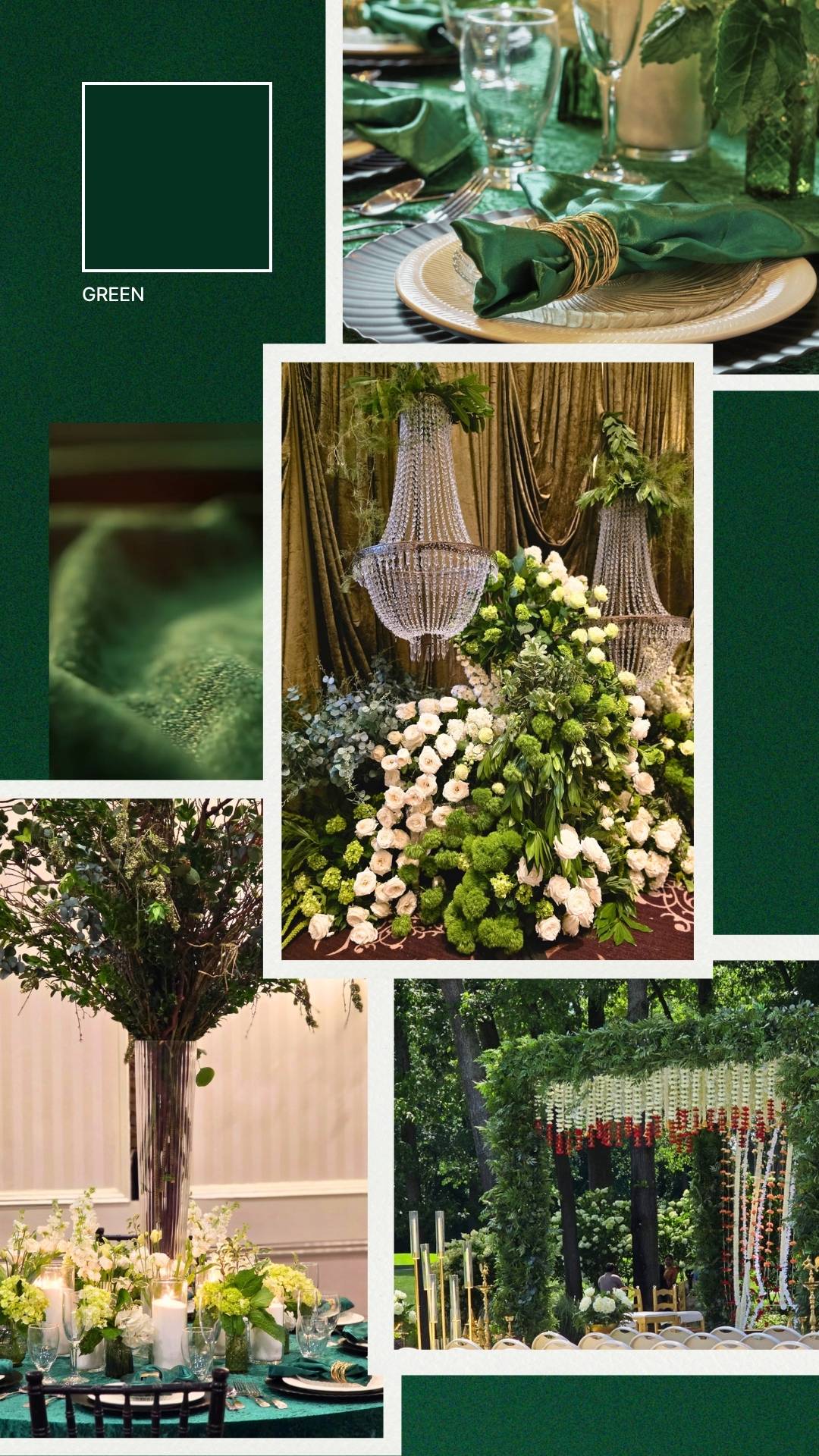 How we use it at Bridal Insignia: Sage green translates beautifully into fresh floral arrangements – eucalyptus garlands running the length of a head table, green-tipped roses in bridal bouquets, and lush garden-style centerpieces that make every table feel like a corner of an English garden. For wedding ceremonies, a floral arch of sage greenery and ivory blooms creates one of the most photogenic ceremony backdrops I’ve ever designed.