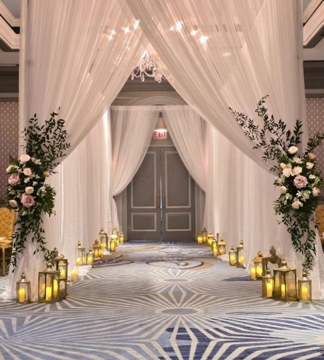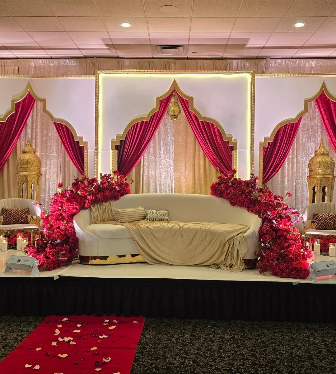A: Absolutely, and it’s one of our specialties. Whether you’re working with the vibrant colors of a Sangeet or Mehndi celebration, the elegance of a Nikkah setup, or the grandeur of a Mandap design, we blend cultural color traditions with modern design sensibility to create something that feels both authentic and fresh. Book a free consult to explore your options.