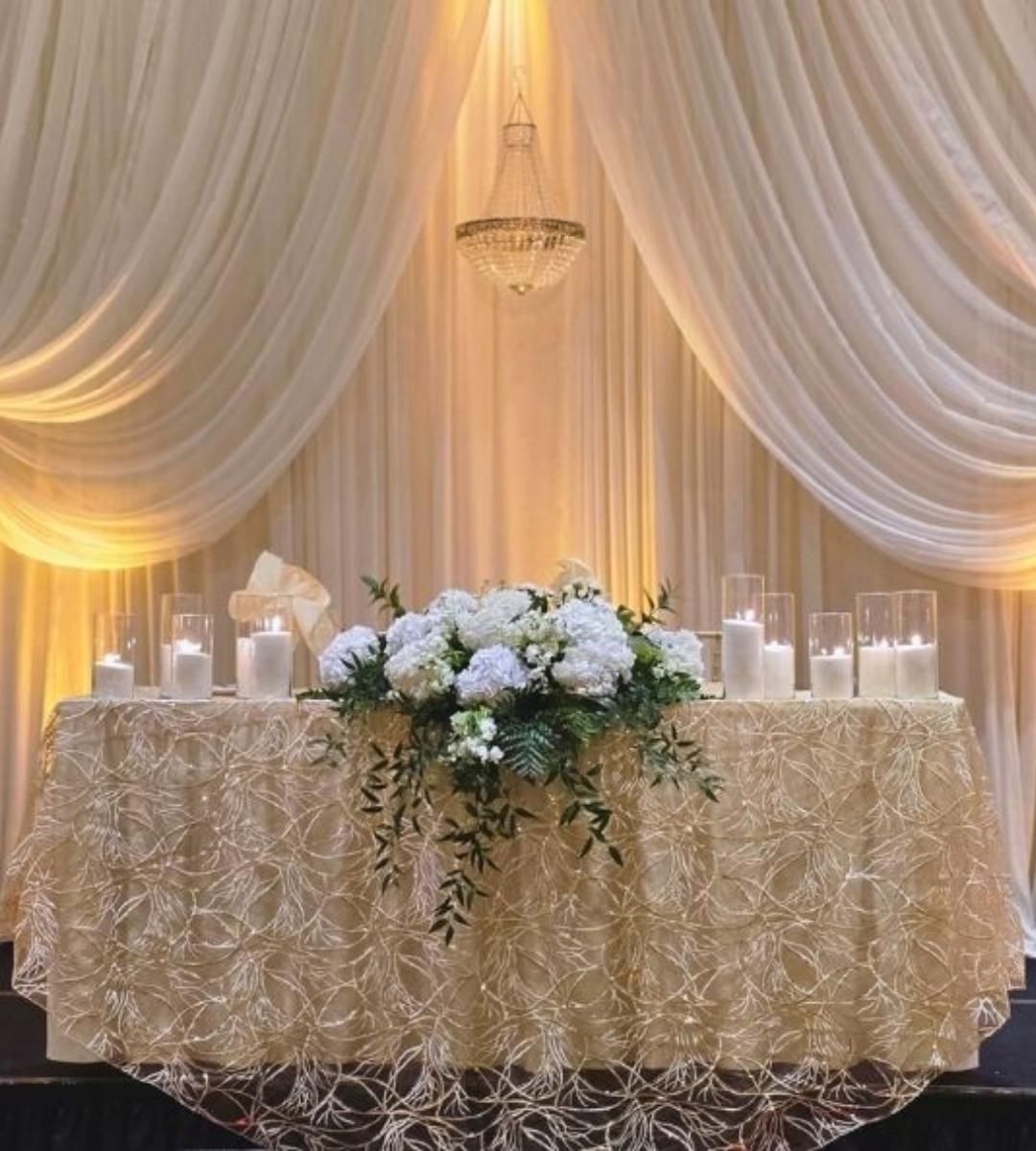 Best for: Autumn and winter weddings, evening receptions, bold ballroom transformations